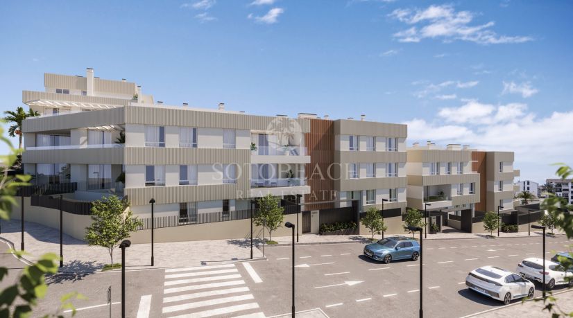 Zenith Estepona is an attractive new development consisting of 40 exclusive homes, available in 1, 2, and 3-bedroom options. This fully gated residential complex ensures privacy and security, going beyond the conventional to provide a unique experience of well-being and comfort. Each home is designed for maximum convenience, featuring a garage and storage room to optimize space and meet residents’ needs. The carefully integrated terraces offer not only a space to unwind but also a seamless connection and attractive continuity between the spacious interiors and the outdoors. Comfort does not end here; the communal areas elevate the living experience at Zenith Estepona. Relax by taking a dip in the refreshing swimming pool, enjoy landscaped gardens that enhance both the aesthetics and functionality of the complex, and stay active in the gym to look after your well-being. This area, strategically located in the heart of the Costa del Sol, connects directly with Marbella, Málaga, and other nearby urban areas, establishing itself as a benchmark in urban development in the region. Its range of services, dreamlike beaches, and excellent connections make Estepona one of the best options for those seeking a comfortable, modern, and well-connected lifestyle. Proximity to key infrastructures such as Estepona Hospital, the renovated port area, modern educational centers, and the vibrant old town—renowned for its traditional charm and rich cultural offerings—are just some of the reasons why Estepona is experiencing significant growth. Without a doubt, the best is yet to come! This development will make your everyday life especially pleasant! Your new life in the center of Estepona, Málaga.