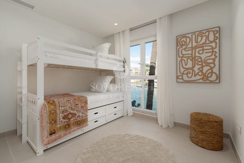 On the first floor, a hallway leads to a large master bedroom with an en-suite bathroom and two further bedrooms that share a bathroom. On the second floor is located the large master bedroom, which occupies the entire floor and features a spacious en-suite bathroom and a large private terrace with spectacular panoramic views of Sotogrande marina, the beach, and the sea.