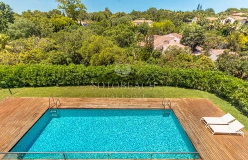 Fantastica villa independiente situada en Sotogrande medio, la propiedad tiene construidos 535 m2 y 2948 m2 de parcela con un gran jardin privado y piscina.